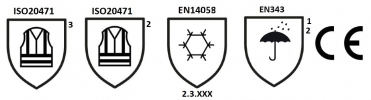 - Fitas retrorefletoras cosidas - 100% poliester com microesferas de vidro,