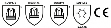 - Fitas retrorefletoras cosidas - 100% poliester com microesferas de vidro,