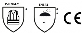 - Exterior: Poliuretano 170g/m2 Amarelo fluorescente/Azul marinho