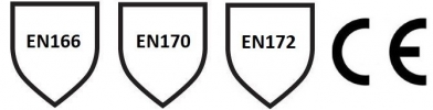 Características:Protecção: Anti UV Haste: Nylon - AjustávelArmação: Nylon Lente: Policarbonato com espessura de 2,4mm - Incolor - PretoProtecção: Superior e LateralCor: Azul/Transparente; Azul/Fumado